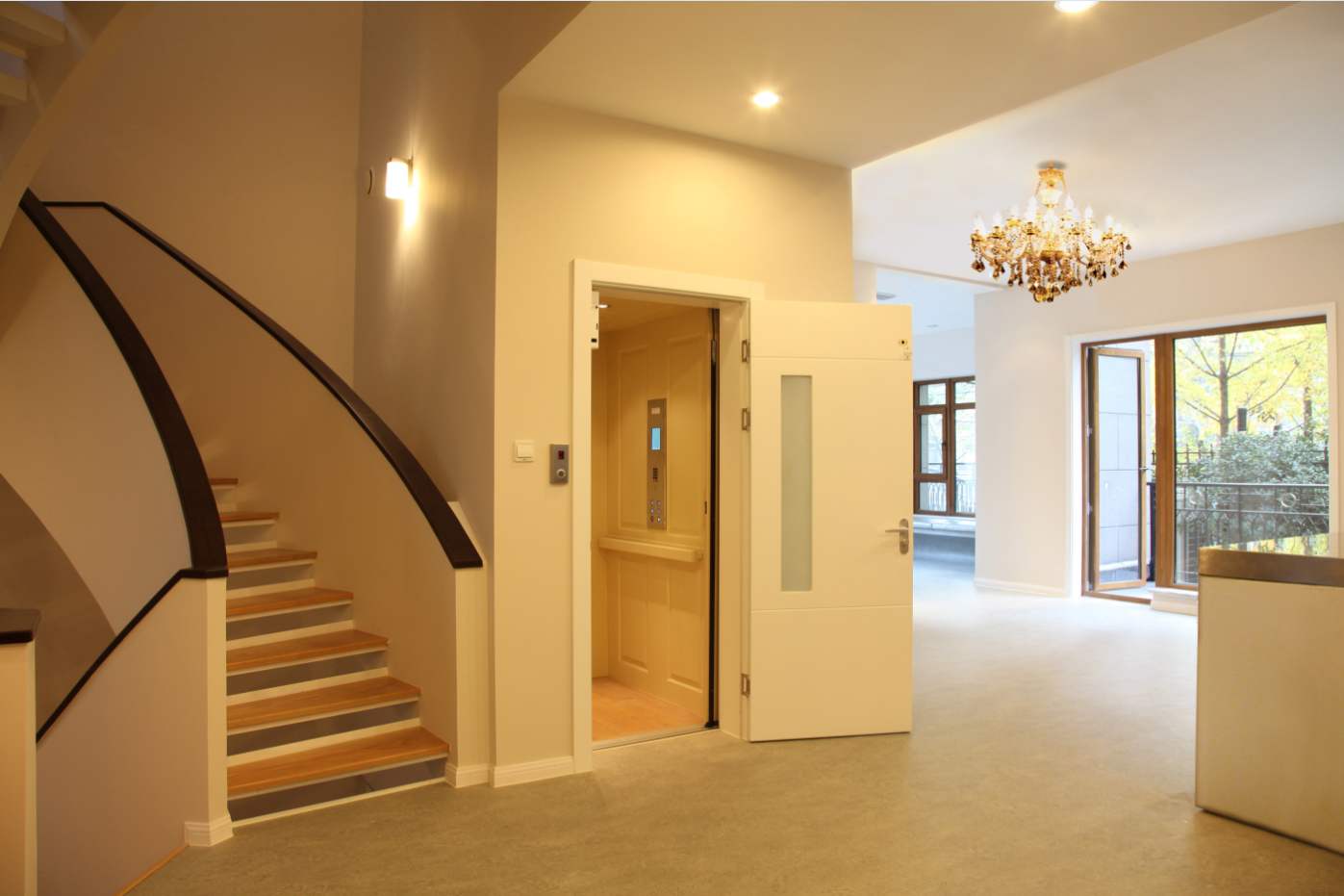 家用电梯是指安装在私人住宅中,仅供单一家庭成员使用的电梯。它也可以安装在非单一家庭使用的建筑物内,作为单一家庭进入其住所的工具,但是建筑物内的公众或其他居住者无法进入和使用。家用电梯额定速度不超过0.4m/s,对于无轿门的家用电梯额定速度不超过0.3m/s,轿厢行程不超过12m,额定载重量不大于400KG。主要分为曳引电梯,螺杆电梯,液压电梯几种结构。